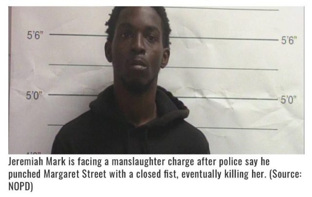 According to nola.com, New Orleans police said the 61-year-old woman, Johnson Street, got into an argument with 23-year-old Jeremiah Mark in the 100 block of Royal Street on April 18 at about 7:45 p.m.