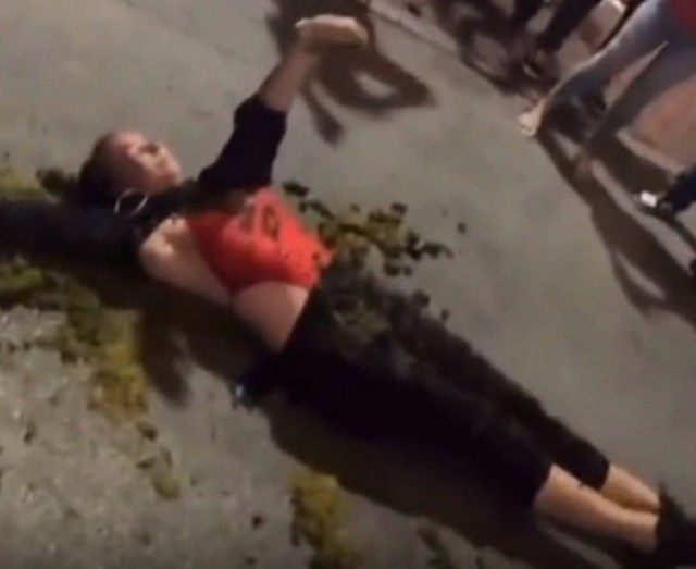 The unnamed woman was seen lying in the middle of what appeared to be Sixth Street in Austin, Texas.