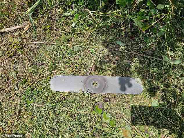 The strimmer was located near the lifeless body, next to a broken metal cutting blade that police think broke on impact with the victim.