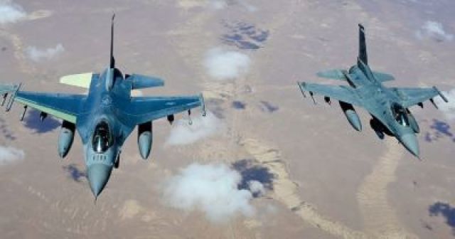 [T]he two F-16s dropped more than 30 precision-guided bombs on the two targets. The F-16s were supported by MQ-9 drones.