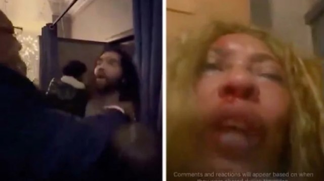 A woman was bloodied and called on "black men" to "stand the f*ck up" and fight back against "the Arabs" who crashed the event.