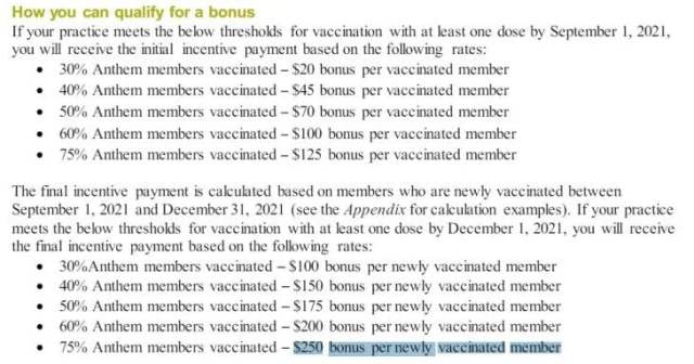 When you do the math, factoring in the $250 incentive, 1,000 newly vaccinated people times $250 = $250,000. Some doctors made less; some made more. But the point is that doctors were financially incentivized to inject as many patients as possible.